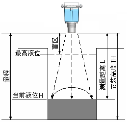 2、探头发射面到最高液位的距离,应大于选购仪表的盲区。