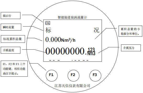 5、旋进旋涡流量计正常工作时,提示OK,如果出现错误时,则提示ERR,并有相应的错误提示符号;
