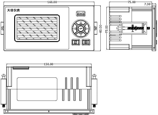 1、将仪表从安装面板(请使用钢板)前方推入安装孔中。其中安装面板厚度为(1.5~6.5)mm。