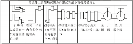 孔板流量计的安装和适用于下列管段和管件有关节流件上游侧第一阻力件、第二阻力件,节流件下右侧第一阻力件,从节流件上游第二阻力件到下游第一阻力件之间的管段以及差压讯号管路等。