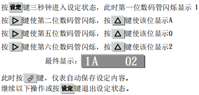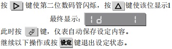 小数点位置的提示符是:d,在设定显示范围前,先设定小数点位置。小数点位置设定代码范围是0~3,其含义是0对应个位〔第六位数码管〕,1对应十位〔第五位数码管〕,2对应百位〔第四位数码管〕,3对应千位〔第三位数码管〕。从例二中我们看到显示范围是-100.0~100.0℃,小数点位置在十位上,也就是说在第五位数码管上显示,其对应代码是1。因此按以下操作进行小数点位置设定。
