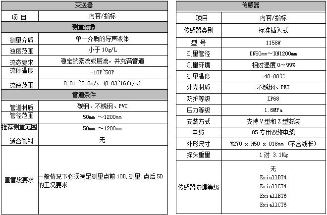 三、插入式超声波流量计技术参数