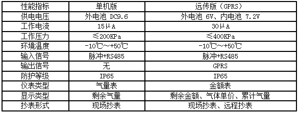 三、IC卡燃气控制器技术参数