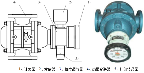 螺旋双转子流量计由流量变送器和计数器组成。变送器的主要部分是由装有一对特殊齿形螺旋转子的计量室和密封联轴器组成。计数机构则包含减速机构、精度调节机构,计数器为字轮累积和电脉冲发信器等。