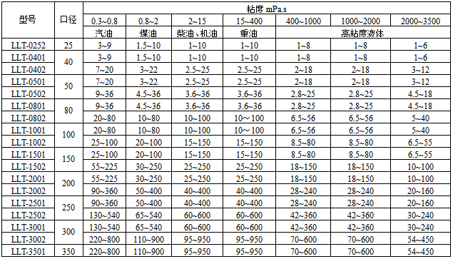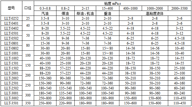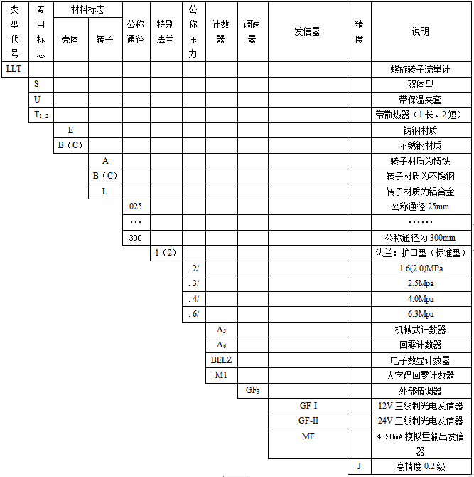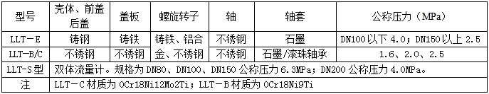 五、螺旋双转子流量计选型型谱