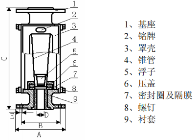 四、普通型玻璃转子流量计结构
