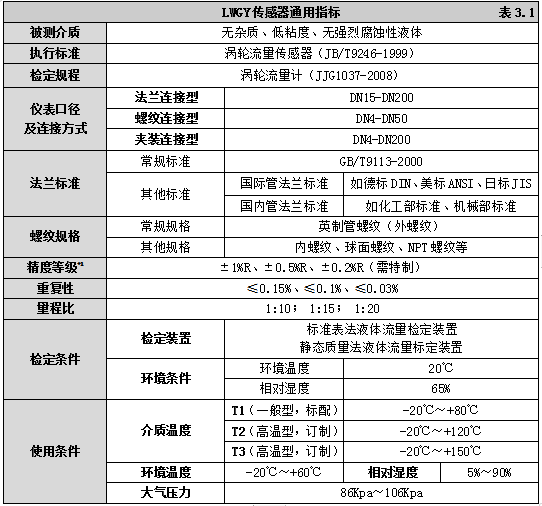 三、UPVC材质涡轮流量计技术规格