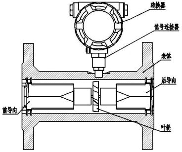 塑料涡轮流量计主要由表体、前导向、后导向、叶轮、信号连接器和转换器等组成。