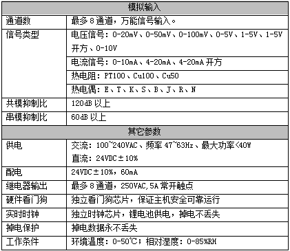 2、输入功能:最多8通道万能输入,可接收电流、电压、热电偶和热电阻等多种输入信号。