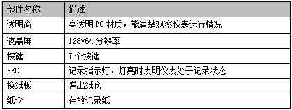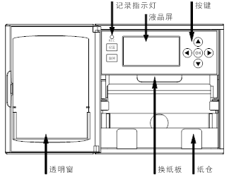 仪表正面由透明窗、液晶面板和纸仓三大部分组成。
