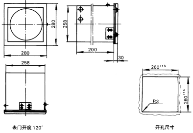 16、开孔尺寸:260×260