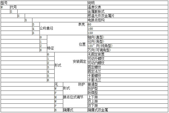 四、双金属温度计型号命名方式
