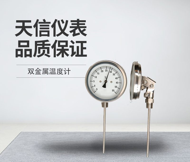 双金属温度计是采用多圈直螺旋双金属片制造的适合温度测量中地范围温度的现场检测工业仪表,可用来直接测量气体、液体和蒸汽的温度。电接点双金属温度计,能在工作温度超过给定值时,自动发出控制信号以切断电源或报警,可以代替工业玻璃水银温度计,广泛用于工业现场和科技研发部门。