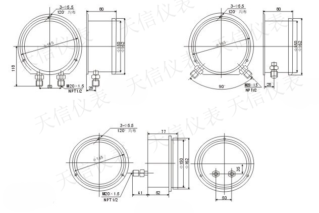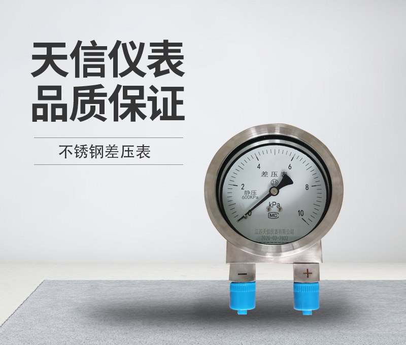 不锈钢差压表适用于化工、化纤、冶金、电力、核电等工业部门的工艺流程中测量各种液(气)体介质的差压、流量等参数。仪表结构全部采用不锈钢制成,其中的测量系统(双波纹管及连接部件)、导压系统(包括接头、导管等)采用特种奥氏体不锈钢制成,具有较强的耐腐蚀及抗工作环境侵蚀影响。仪表整体结构设计合理、工艺先进、具有体积小、重量轻、稳定性好、使用寿命长、外观新颖、适应性强等优点。仪表接头的连接形式有平行式(可直接与三阀组连接)和斜式两种,能够适应不同用户的配套安装。