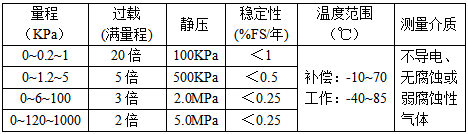 测量范围:0~0.2~1000KPa 量程连续可选