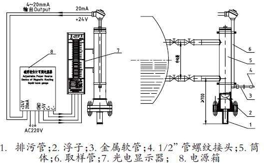 5、测量管与液位显示部分,液位变送器,报警开关在耐压,耐气上完全隔离的;