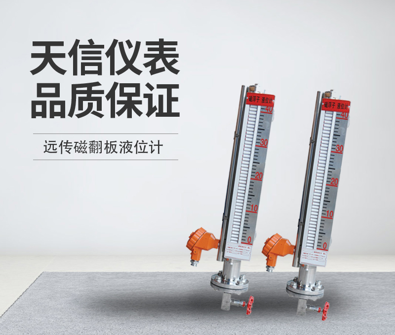 远传磁翻板液位计是利用其内部的磁性浮子随液位变化产生的磁位移,使得液位视窗的红白磁翻柱作相应的翻转来指示液位的高度。当浮子下降时,由红色转为白色,红色始终表示液位的高低。