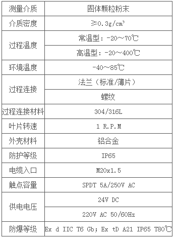 三、阻旋式料位开关技术参数