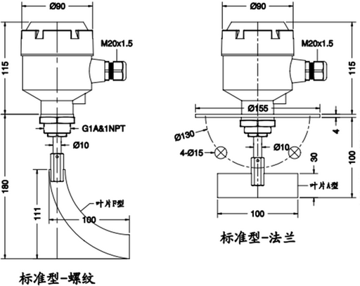 四、阻旋式料位开关外形尺寸
